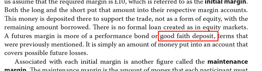 R48 Q27的c选项英文解析里说futures 有margin ,margin可以是performance bond or good faith deposit .C选项讲的是futures的特点,所以错的,对吗?。 那performance bond or good faith deposit 这两个是什么意思啊?