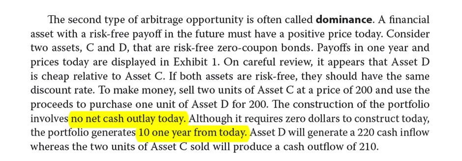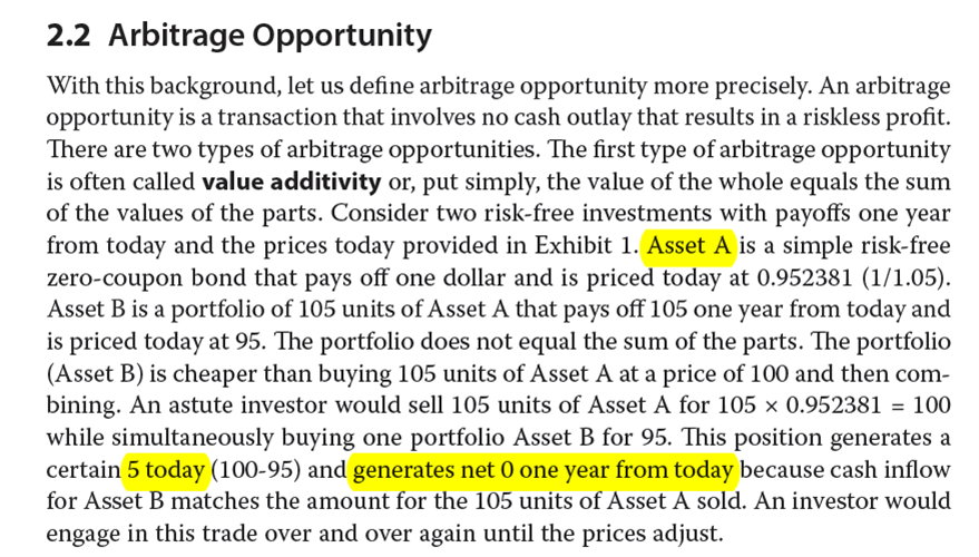 根据套利的定义,解析中也呈现了,期末有相同的结果,没有loss也没有gain,在期初有净现金流的产生。衍生品里这样定义,所以我们按照原版书来。