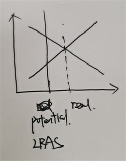 老师,这道题这样画图对吗?但是当 Actual real GDP大于potential GDP的时候,按照图形,此时AS大于AD,这样不对吧?