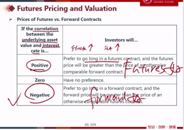所以本题利率不变,两者价格相同;如果利率上行,投资者prefer futures;利率下行,prefer forwards,届时forwards价格更高。我理解对么?