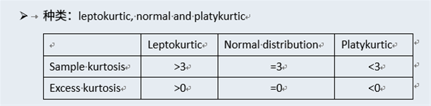 Excess kurtosis如果是1.9,大于0,表示的是Leptokurtic。