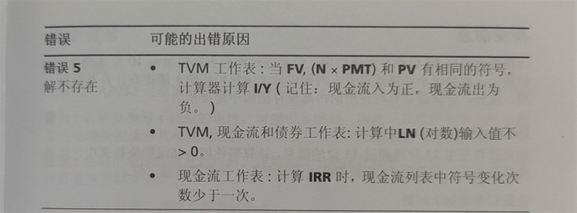 老师您好,我按照课堂上教的方法按了计算器,最后一步CPT-N之后计算器屏幕上出现了“Error 5”这样的字,请问是什么原因呢?