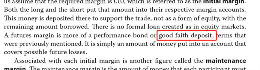 performance bond本质是打入margin account的cash deposit,如果把C改成正确的,应该加入Both双方强调无论是买方和卖方都是应该存入资金的,另一个删去at initiation期初,因为cash deposit在margin保证金账户不够的时候需要补交保证金,也是cash deposit/performance bond。