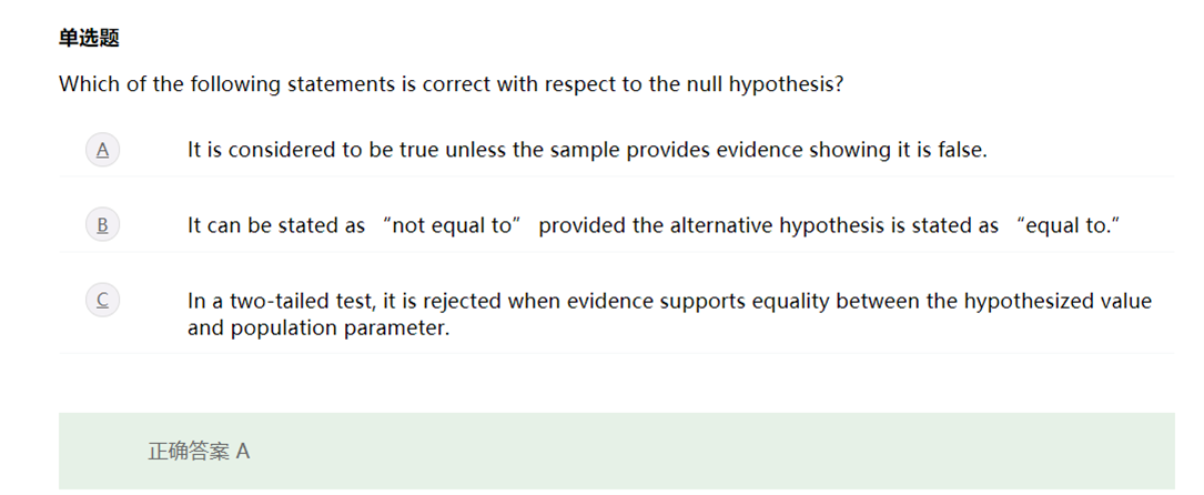在CFA一级中,假设检验基于的数据分布是连续型分布,我们认为取到某一个点的概率为0,或者是没有意义的。
