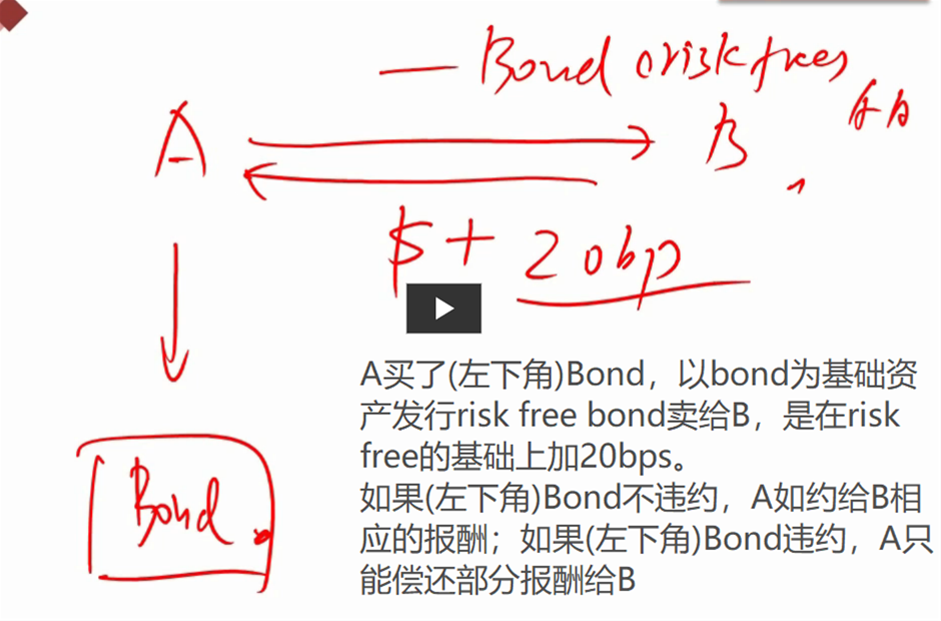 在讲到credit linked note的时候,为什么是B给A多加20 bp,如果是B要承担A的违约风险,不是应该A给B多加20bp,以此来体现双方的风险对等和利益关系吗?这一块的逻辑不是很懂