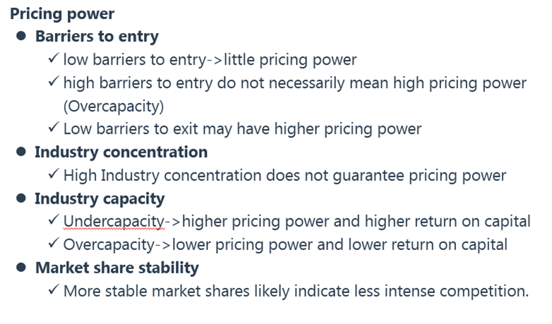 公司的定价能力有下面四个影响的因素。如果没有印象了可以再听一下相关的课程哦。