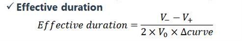 见下图公式,只有Effective duration是由V_和V+来计算的,这就表示用的是真实价格。