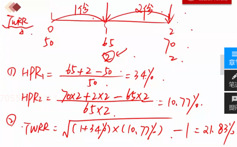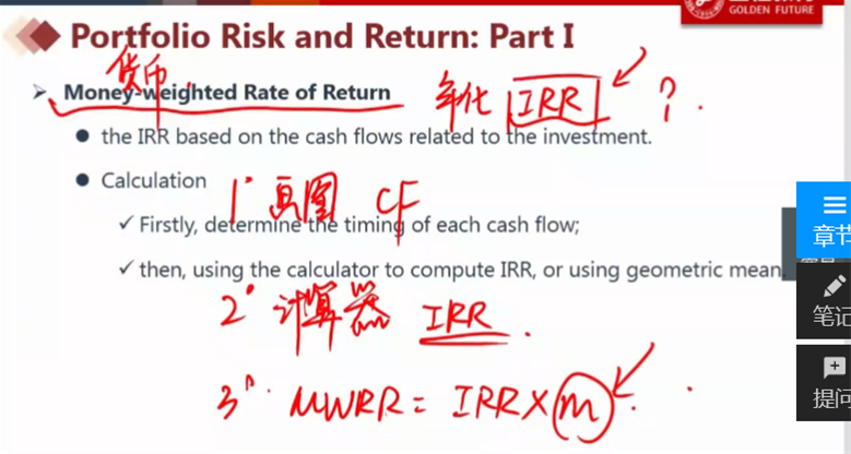老师,一年内多期的IRR求MWRR的时候,为什么是MWRR等于n倍的IRR,而不是求IRR的几何平均值呢?