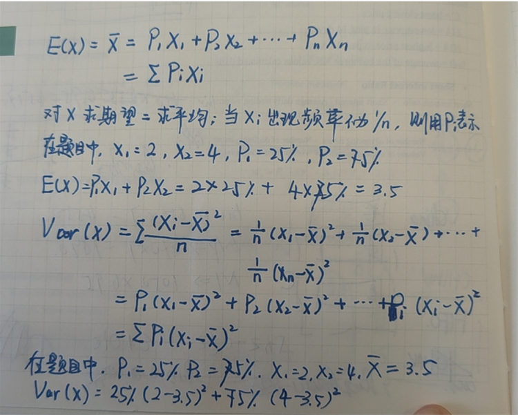 E(EPS)=25%X2+75%X4 这个的逻辑是啥;为啥这个结果得出来就是X(ba)可以直接带入Var的公式? 不理解感觉好难记忆...这两步是个啥关系