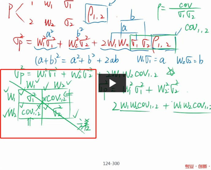 95页上面的列题中的协方差矩阵和124页老师在空白出话的表哥不是一回事啊,看不懂为什么老师自己画的关于w1w2的表格为何横的纵的都是w1,w2