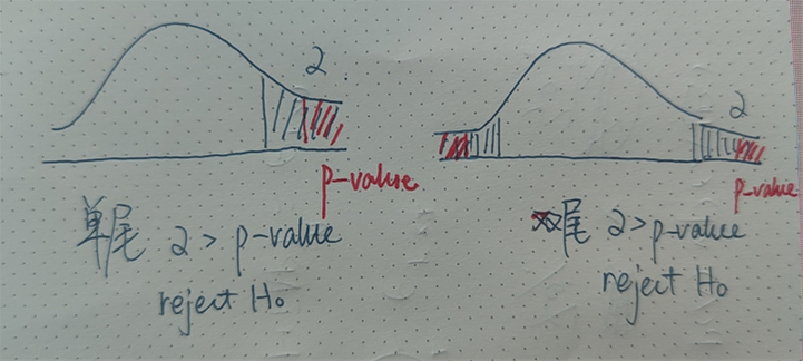 老师你好 我问一个p-value的问题 我想了很久 就是说p越小 这件事我觉得越荒谬 就越会去拒绝原假设。当p-value小于significance的时候,我们需要拒绝原假设。我画了一个图,当p小于阿尔法的守候,要是检验统计量落在1 2 区域,的确需要拒绝原假设,那如果落在3 4 区域,还是在接受域内 那不是不用拒绝吗?