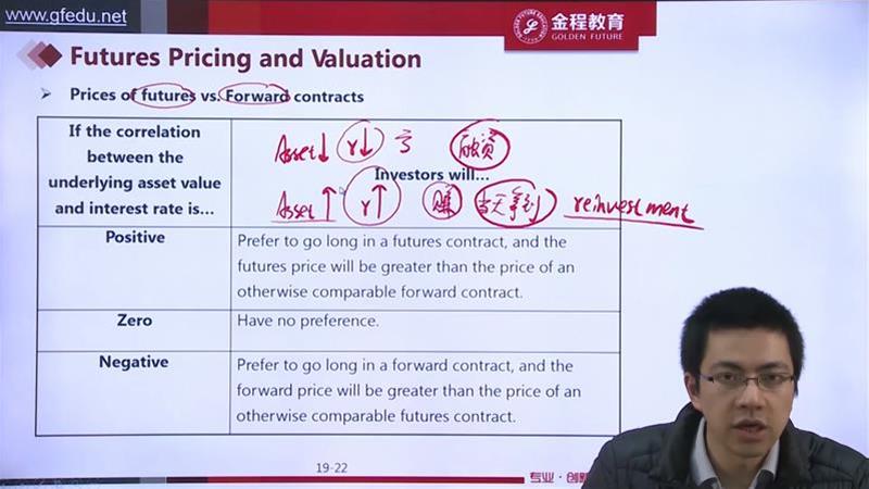 因为forward和futures本身特质引起的,无论合约期间payoff是+或者-,forward contract不会发生任何的CF交换,而futures不一样,他有margin account。若:合约的一方long头寸,看涨标的资产stock,进入合约后,stock上涨,这一方处于payoff为+的情况下,margin account中的钱可能超过了initial margin,这一方投资者可以将钱取出,以市场利率再投资,这个就比forward来的好了。另一种思考角度是从forward入手,赚的钱取不出来,interest相当于一种机会成本,此时你选择把理论上挣的钱留在这个forward中,放弃了投资其他金融工具的机会,所以这个时候希望interest rate第一点。