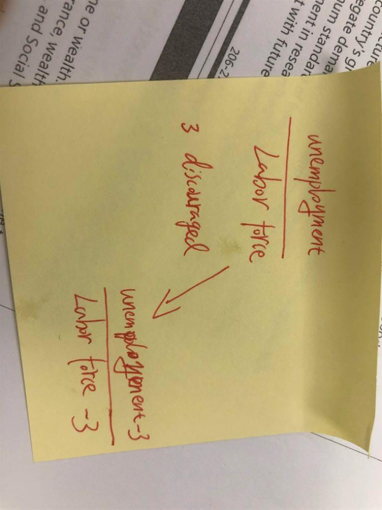 第二个问题,两者的区别在于本身discouraged worker是失业人口,找工作受挫才放弃找工作,此时discouraged worker的上升会导致劳动力数量下降同时失业人口下降