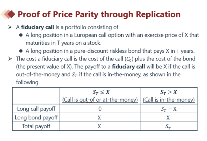 本题考查的是买卖权平价公式,CK=PS这个口诀,CK对应的是fiduciary call,PS对应的是protective put。如附图1和2