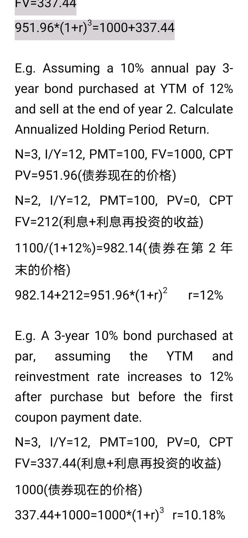 卖掉的市场价格为P,在t=1时刻又有一笔coupon,在t=0时刻花了PV买入债券,那么HPR持有期收益率=(P+CF)/PV