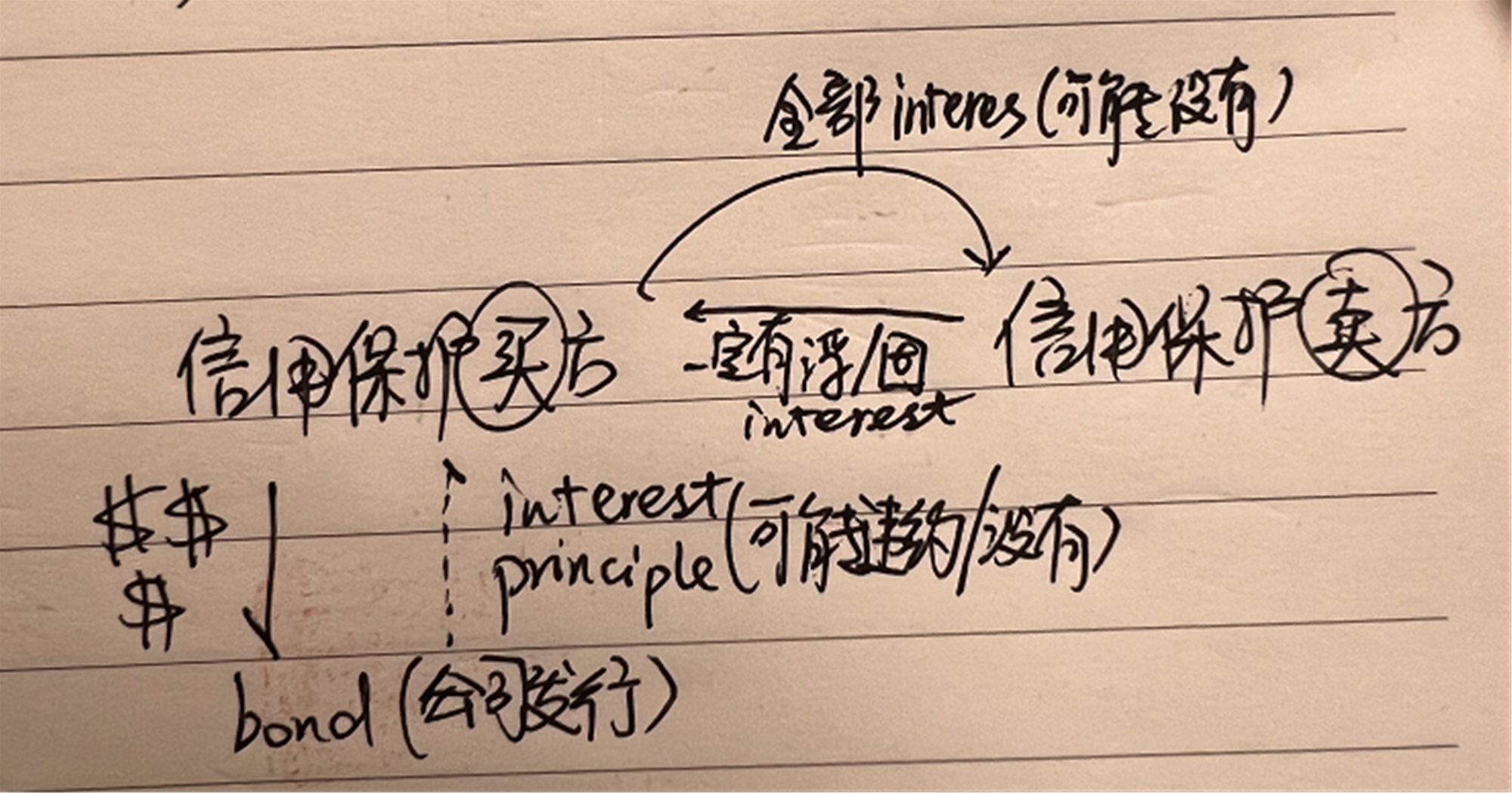 假设A(信用保护买方)公司买了B公司的债券,A公司担心B公司会违约,于是A公司找到了C公司(信用保护卖方),约定将每期A收到的B公司的coupon换C公司的index return