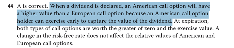 美式的可以提前行权,但不影响它价值value的变化呀,在宣布发放股利的时候,美式与欧式的看涨期权的value都会下降呀。题目问的是value呀