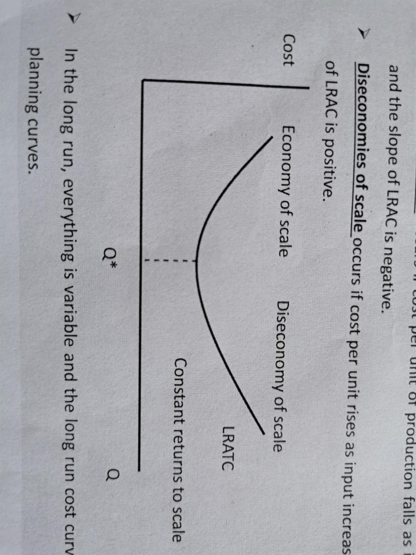 那要这么说,在规模经济的情况下,也就是长期平均成本下降的阶段,其中取一个点,产量也小幅变动,成本应该也不变,也是constant return to scale……图中每个点都是constant return to scale,对吧??