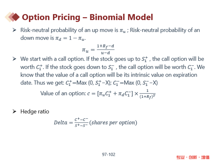 依据的是“Risk-neutral probability ”风险中性概率计算的,而这个概率的计算和股票上涨和下跌的实际概率无关,而是与u,d,Rf有关