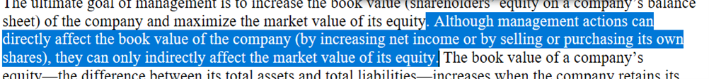B选项是正确的,因为book value和market value是会有偏差的,比如市场中的人都不知道你的公司Net income增加了,但是你的book value在你自己公司的报表上增加了,这个时候market value和book value就不一样了。