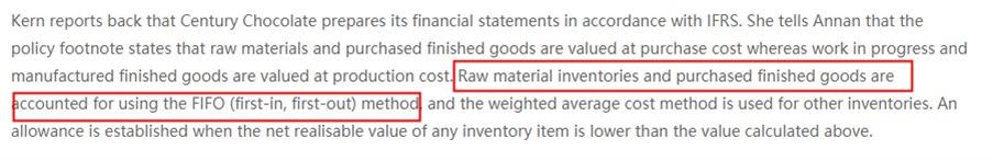 老师,第二小问感觉题出的有些问题,1. 题目问What is the most likely justification for Century Chocolate’s choice of inventory valuation method for its purchased finished goods?正确选项描述的是它的一个性质。它同时也是选择这个方法的理由吗?(我理解的题目重点:justification)。2. 选择specific identification, FIFO, LIFO, weighted average cost方法,它们各自的justification各是什么? 谢谢!