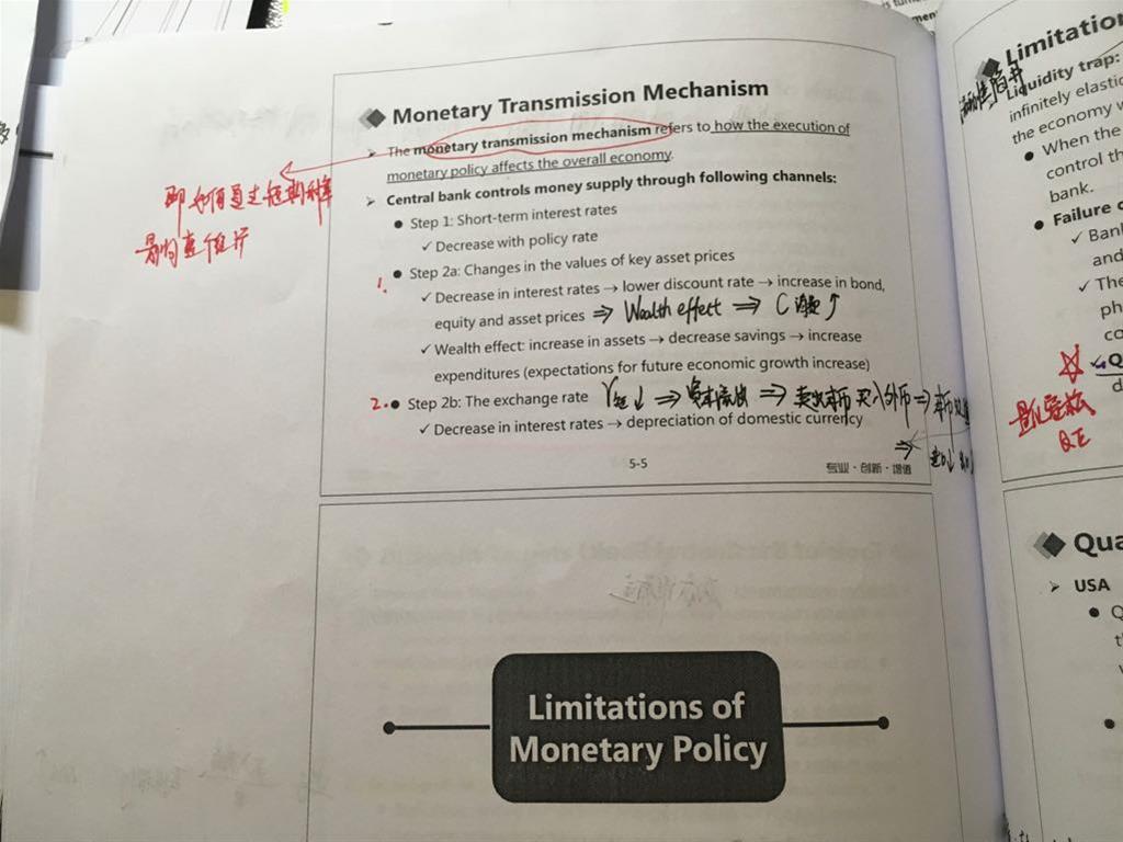 老师您讲的我懂了,但是请看这张图片,我做的笔记都是老师上课讲的,笔记是说通过影响短期利率进而影响消费呀,出口呀,进而影响整个经济。但是老师您回复的这个关于monetary limitation(即短期利率到长期利率是传导不过去的) 。那这么推断的话,就是说影响整个经济的是短期利率而不是长期利率吗? 但是感觉这个明显和常识违背。 我上述表述有误请您指出。并且我想问:影响经济的到底是什么,是资本,劳动力,技术? 影响实体经济的又是什么?