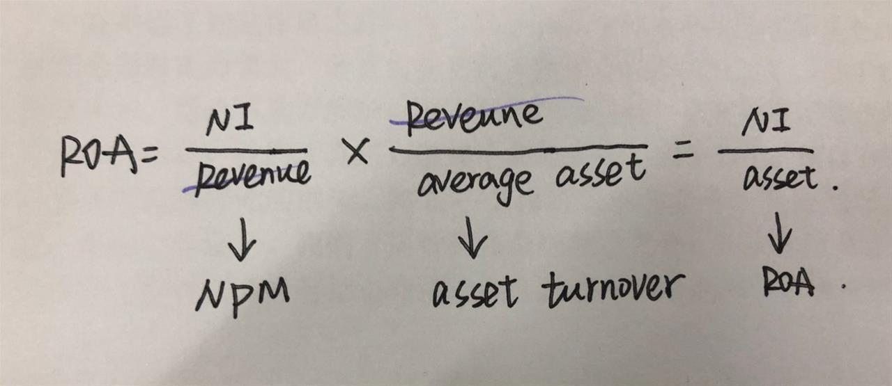 题目表格里的第二行是ROA。ROA=NPM*Asset turnover