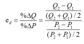 当价格从P1变化到P2所对应的需求量的变化,需求曲线上两个点之前的价格弹性即为弧弹性。因此,弧弹性应用于题目只给出两个点的价格(P1、P2)和需求量(Q1、Q2),而没有给出需求函数的具体表达式,直接将两个点的变量(P、Q值)带入即可计算出两点间的弧弹性。