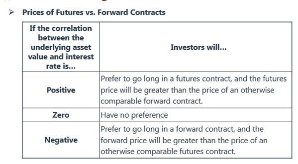 同学你好,其实这题考的是underlying的价格和利率相关时,投资者是更喜欢forward还是futures的问题,关系如下图