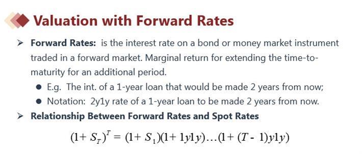 spot rate即期利率,forward rate远期利率,他们之间可通过讲义中的公式进行相互转化