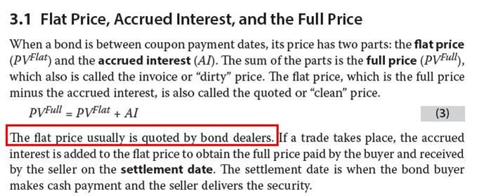 规定了债券是以净价clean price(flat price)来报价的。