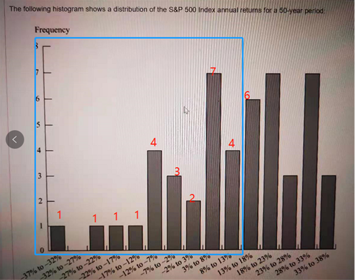 mode众数是一组数据中出现最多的数字。题目问的是mode众数,图形的纵轴表示落在一个区间中数据的个数,一共有3个柱子最高,分别是从左到右数的第8/11/13个,于是有三个众数(区间)。