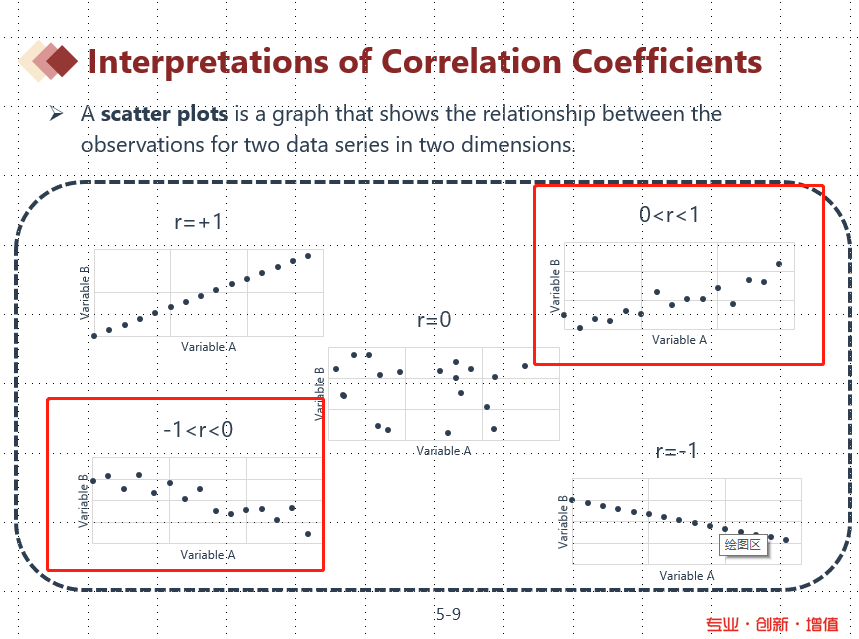 当相关系数不为+1和-1时,此时有不完全线性关系,例如一个随机变量上涨10次,另一个随机变量上涨了8次而不是10次。