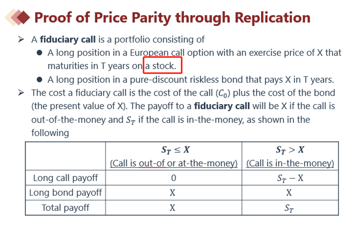 买卖权平价公式的S就是特指/默认是stock吗?所以这个公式的适用范围不是很小吗?如果S不一定是stock的话(如forward),除了stock和forward,option还可以和哪些金融搭配呢?