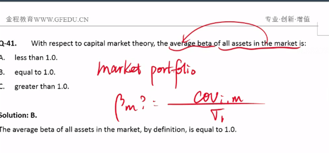Q41 - market portfolio不是只有all risky assets吗?没有考虑到riskfree asset?要考虑吗,考虑的话是不是就不等于1了