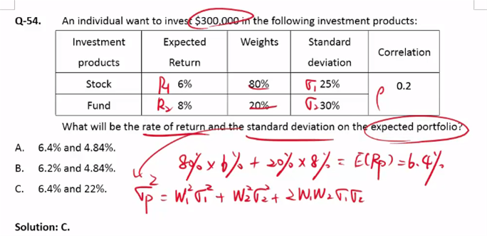题目需要求的是expected return和standard deviation,和不求协方差。