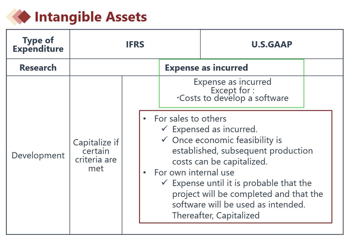 然后你这里说反了,应该是US GAAP下只有software开发费用可以被资本化,其他的R&D都是费用化