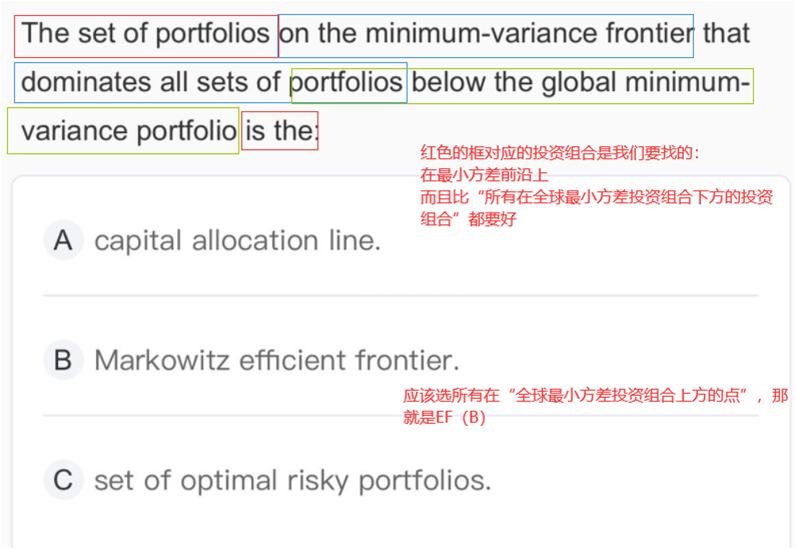 请问老师below the global minimum variance port folio指的是在这个点下面的曲线吗?那不应当是Minimum- variance frontier?