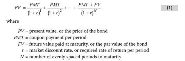 见下图,公式中r就是利率,PV是债券价格,成反比