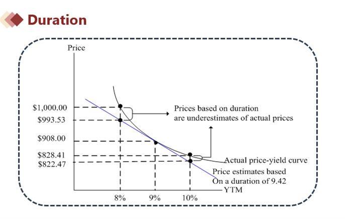 见下图讲义。实际价格是曲线,久期算出来的是那条直线