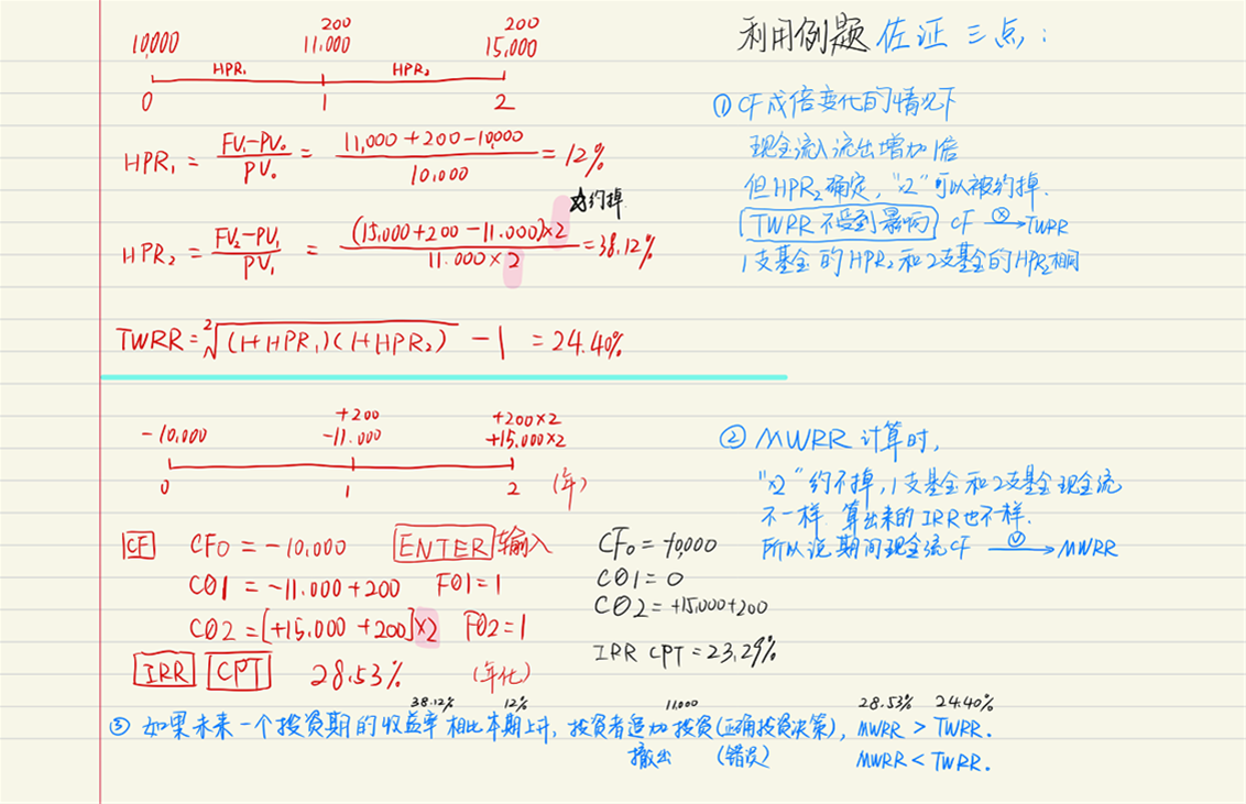 这里有个例题可以说明TWRR不受到期间现金流影响。
