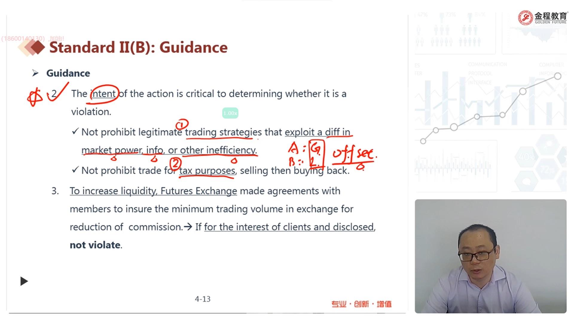 这里的意思是说以避税为目的(tax purposes),例如:基金经理为了避税,年底将浮亏的卖掉,将浮亏变为真实的亏损,降低了收益,从而达到少交税的目的,报税结束后再把标的资产买回来,这种情况不属于市场操纵(动机是为了避税)