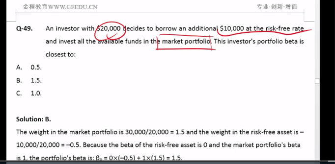 首先,按照无风险资产借钱可以看成投资在无风险资产(F)中的钱是 -5000;(投资取正号;借钱取负号)