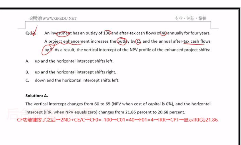 老师,百题的22题为什么我拿计算器算不出来irr,麻烦老师给演示一下用计算器计算
