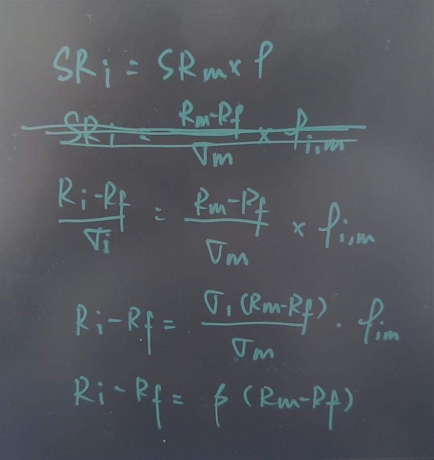 sml线上任意一点的sharp ratio: sr(i)=rou*sharp ratio(m),是这个公式呀老师。