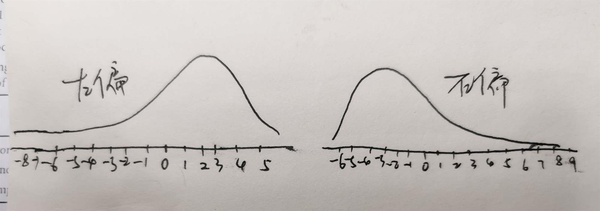 你写反了,应该是:左偏,有较少极大损失,较多极小收益;右偏较多极小损失,较少极大收益。