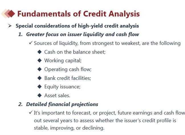 这道题目问的是与高收益信用分析相比,投资级别分析更可能依赖于: