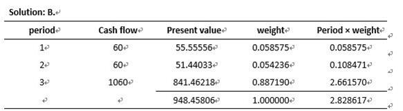 这道题是要直接用macaulay duration的公式来计算,见下图公式。