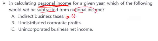 这题a选项里,和national income公式里的indirect business taxes-subsidy 有什么区别?