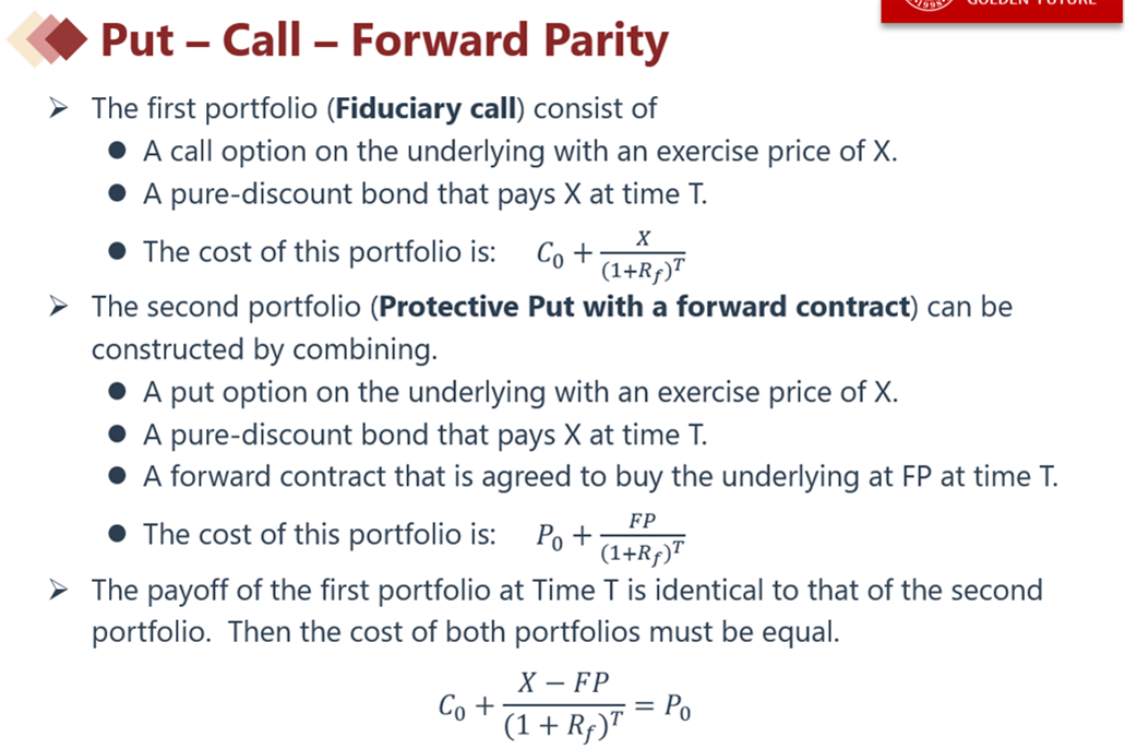 fiduciary call是指买卖权平价公式中的C+K。